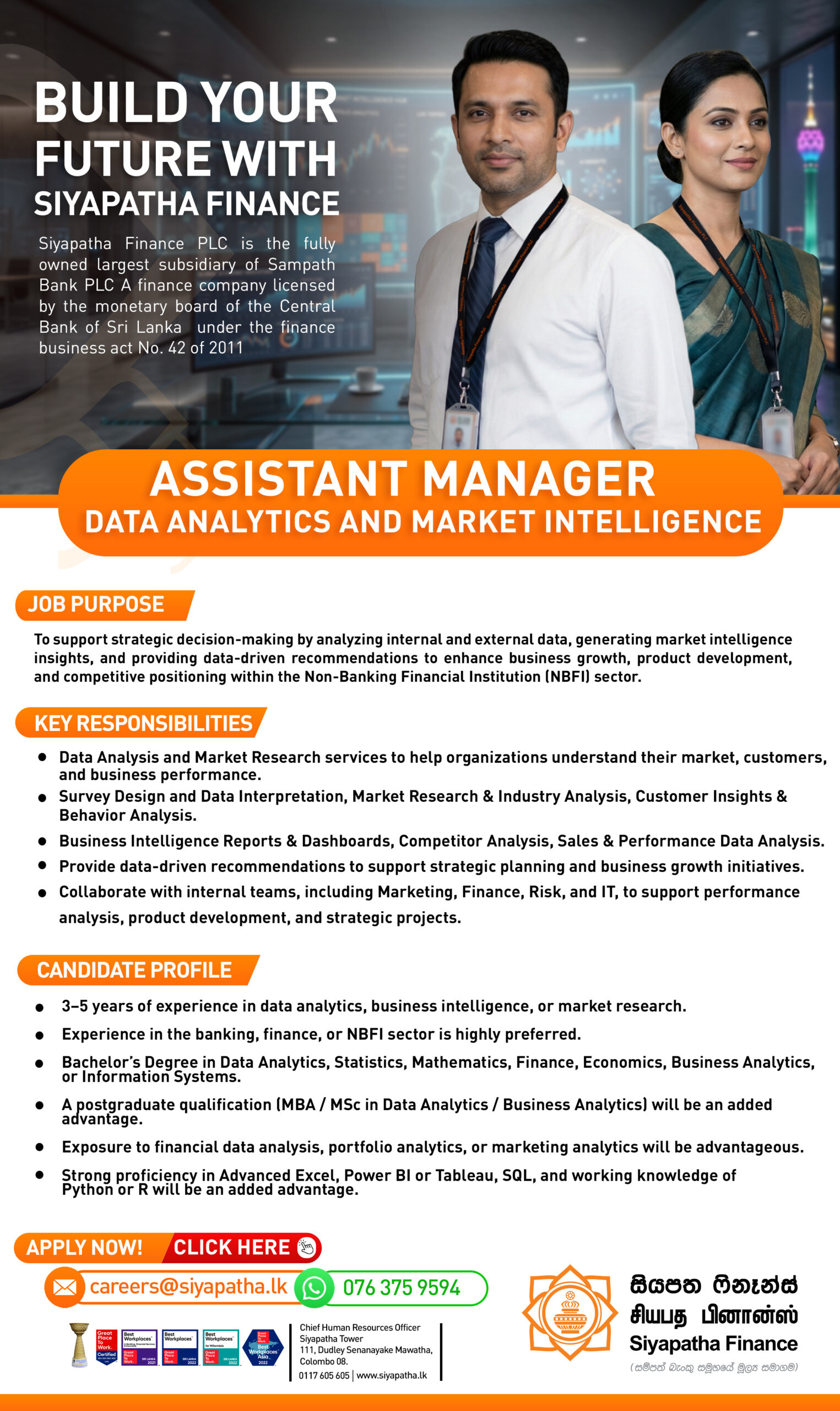Siyapatha Finance is a direct reflection of its people and recognizes its human capital as its most valuable asset. Directed by an inspiring leadership style and built on sustained excellence and best people working smart, Siyapatha’s culture is nothing short of spectacular. Our unmatched performance as a trusted financial partner in the country stands as a testament to our company-wide commitment to be the best in everything we do!